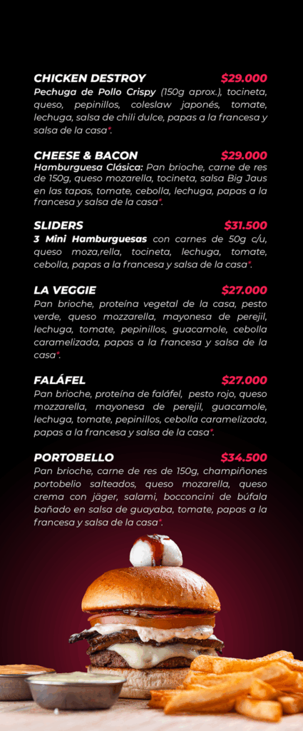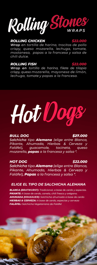 Elige entre cualquiera de las salchichas disponibles y acompáñalas con unas ricas papas a la frncesa y salsas de la casa.